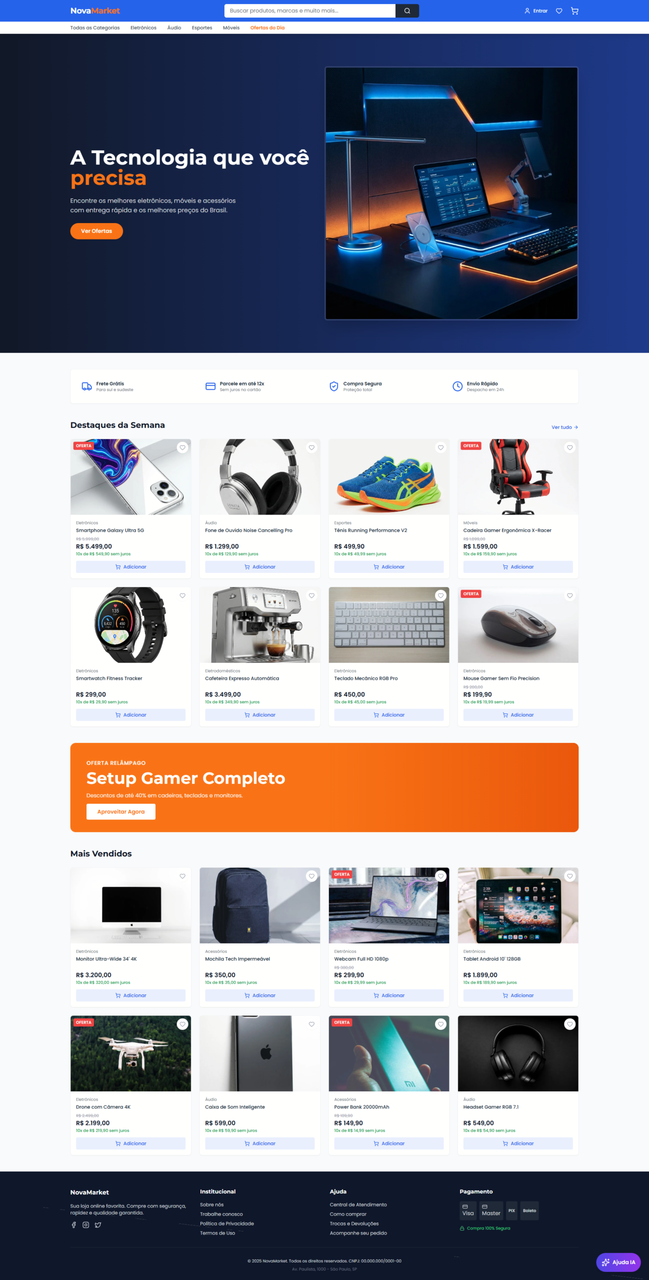Criação de sites modernos, responsivos e otimizados para SEO, que funcionam bem em qualquer dispositivo e ajudam sua marca a se destacar.